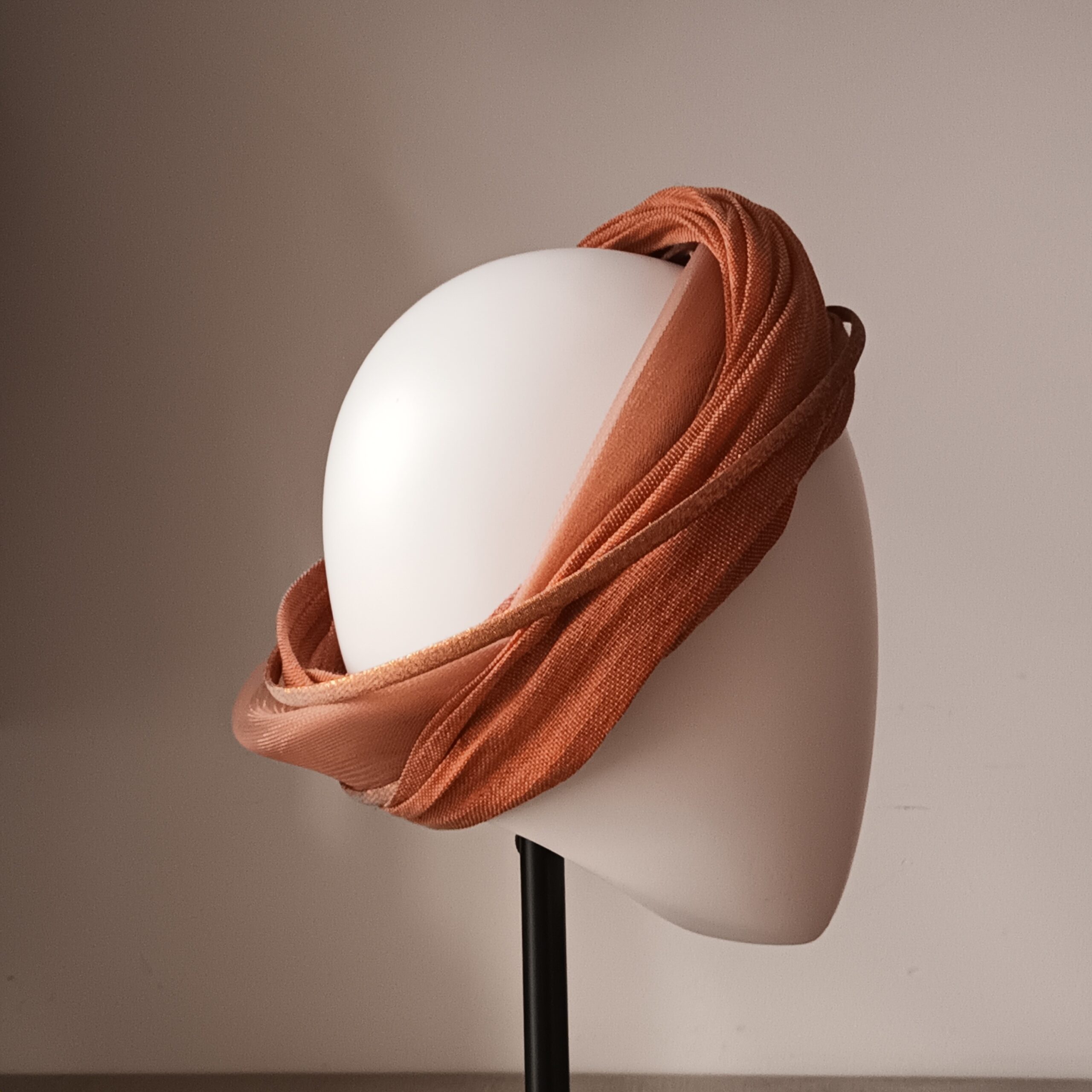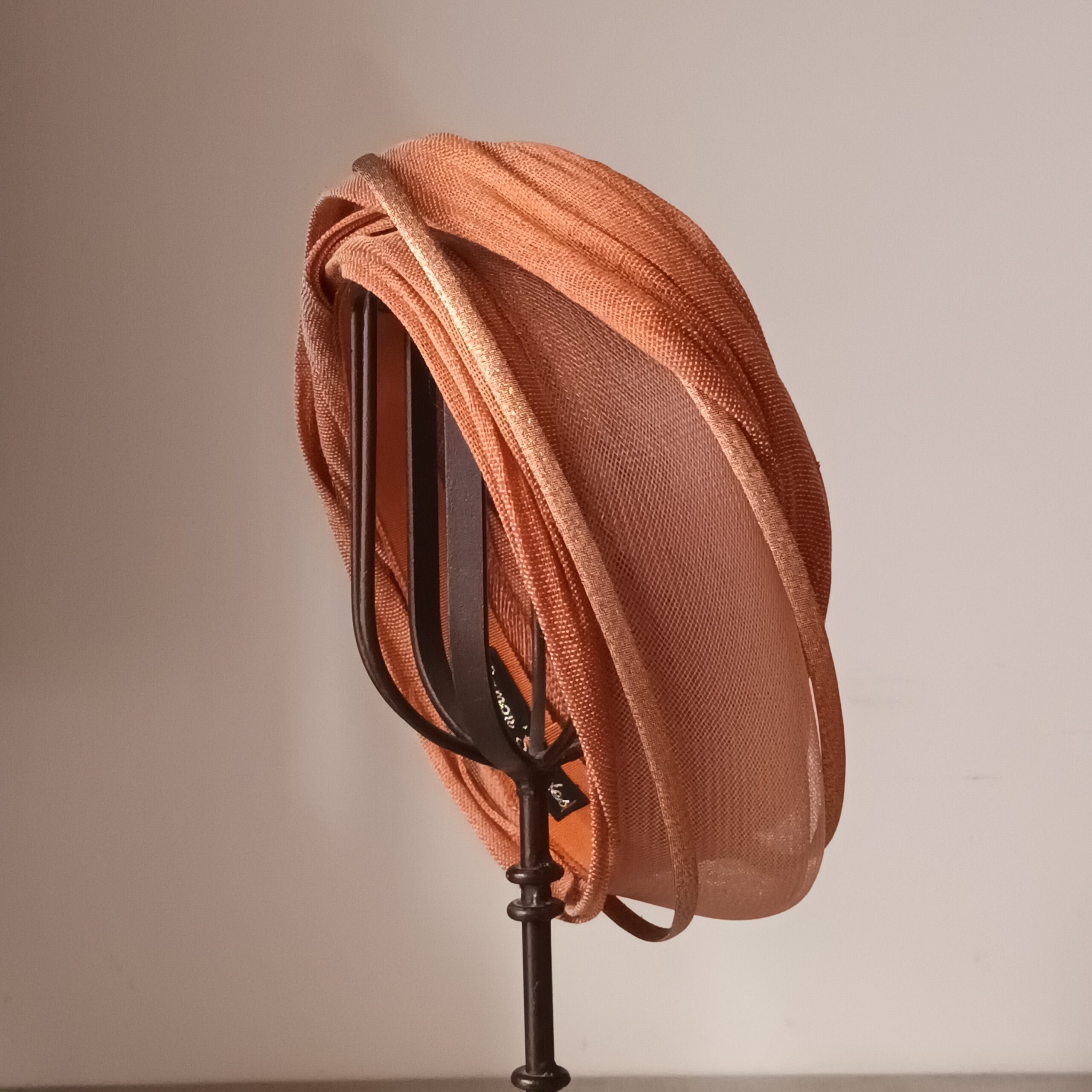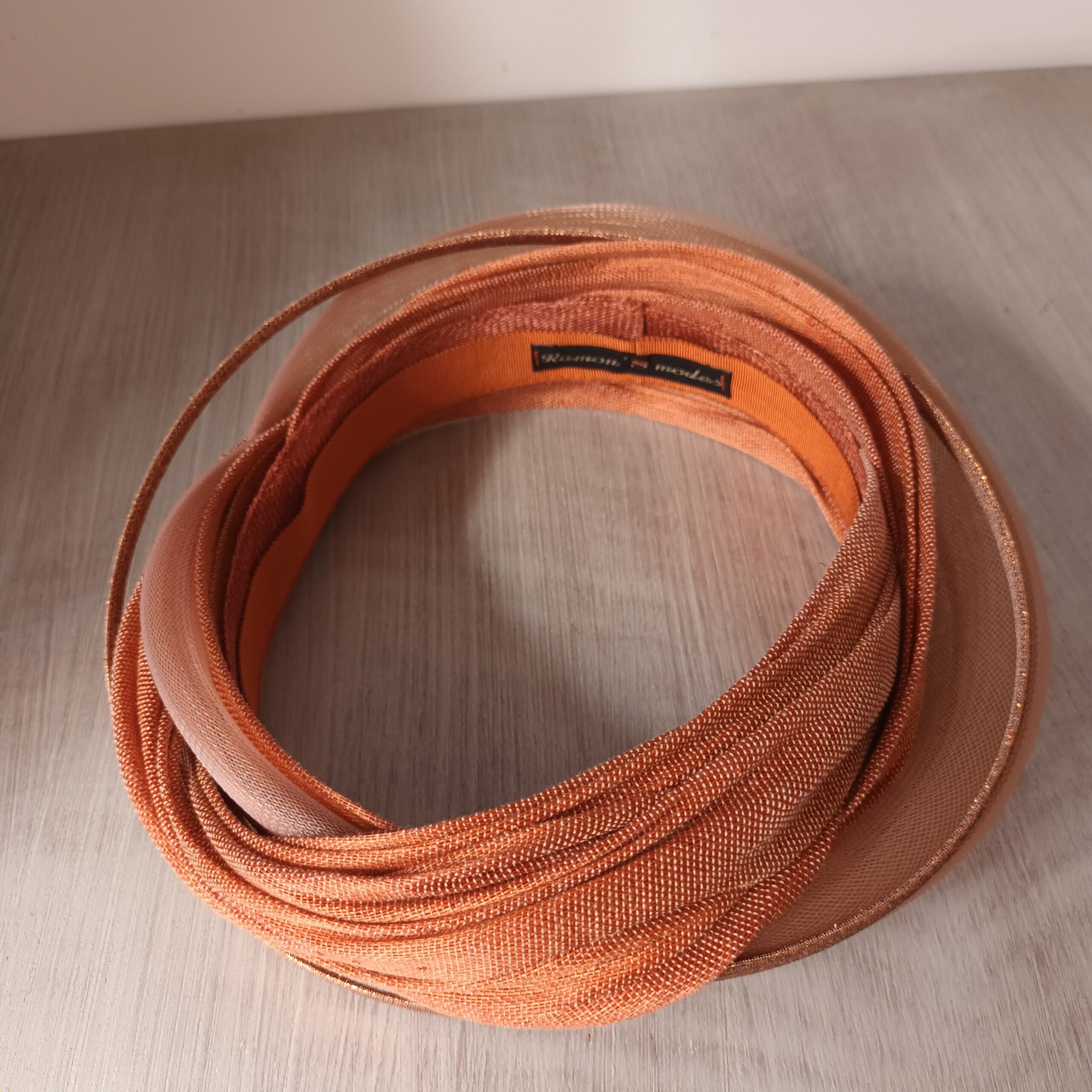 Découvrez notre bandeau en fibre de banane ultra-coiffant, un accessoire de mode essentiel pour sublimer votre coiffure. Avec son design innovant, ce bandeau évoque un tourbillon de matériaux dans une élégante teinte terracotta. Sa superposition de crin large taupe et doré naturel crée une texture unique qui attire le regard tout en ajoutant de la légèreté. Le ruban spaghetti en lurex cuivré, renforcé pour un effet spirale, apporte une touche de brillance et de sophistication, rendant ce bandeau parfait pour toutes les occasions. Que vous assistiez à un mariage, une soirée chic ou que vous souhaitiez simplement rehausser votre look quotidien, ce bandeau est l’accessoire idéal. Facile à porter et à assortir, il s’adapte à toutes les coiffures et styles. Optez pour ce bandeau en fibre de banane pour allier confort, style et originalité, et faites tourner toutes les têtes sur votre passage !