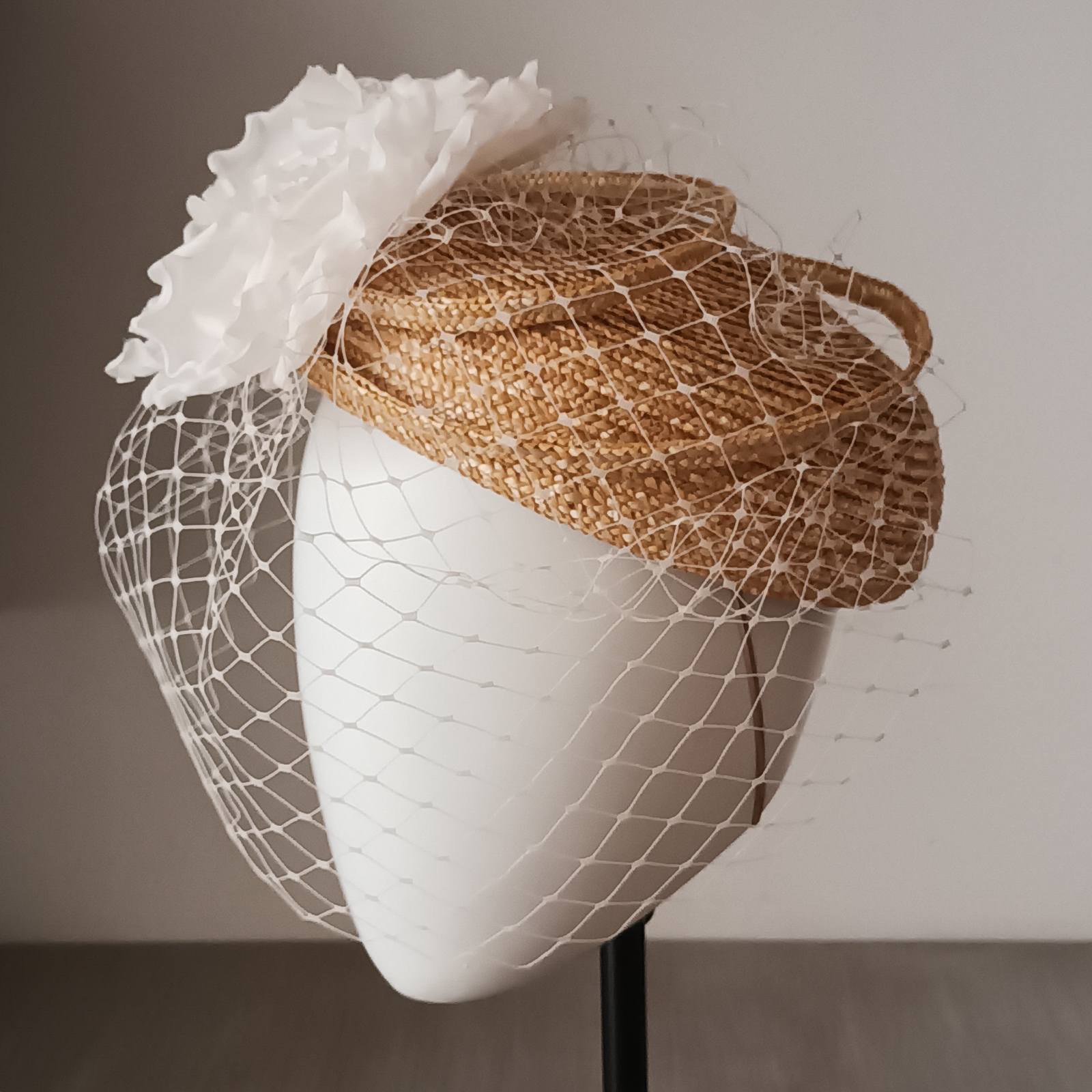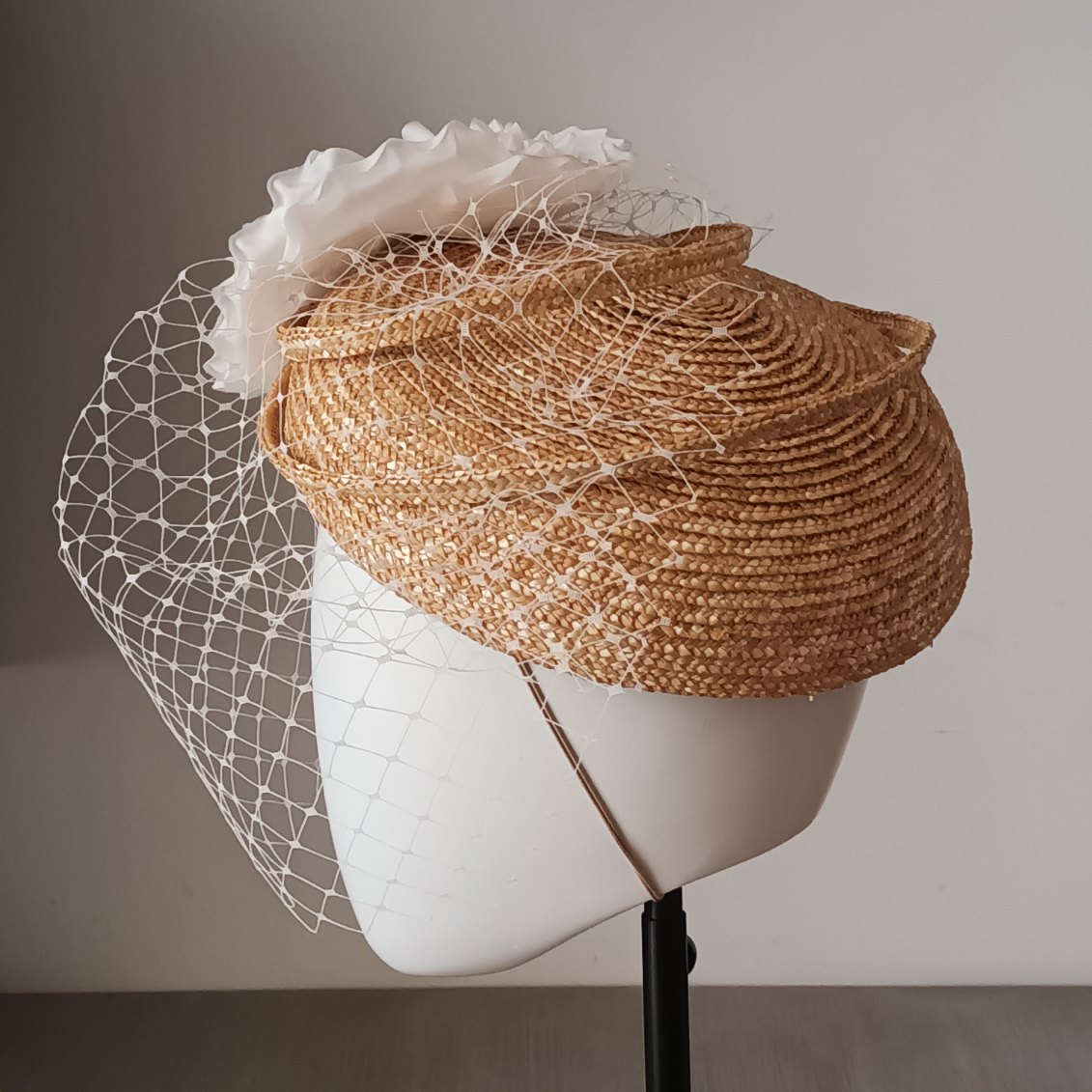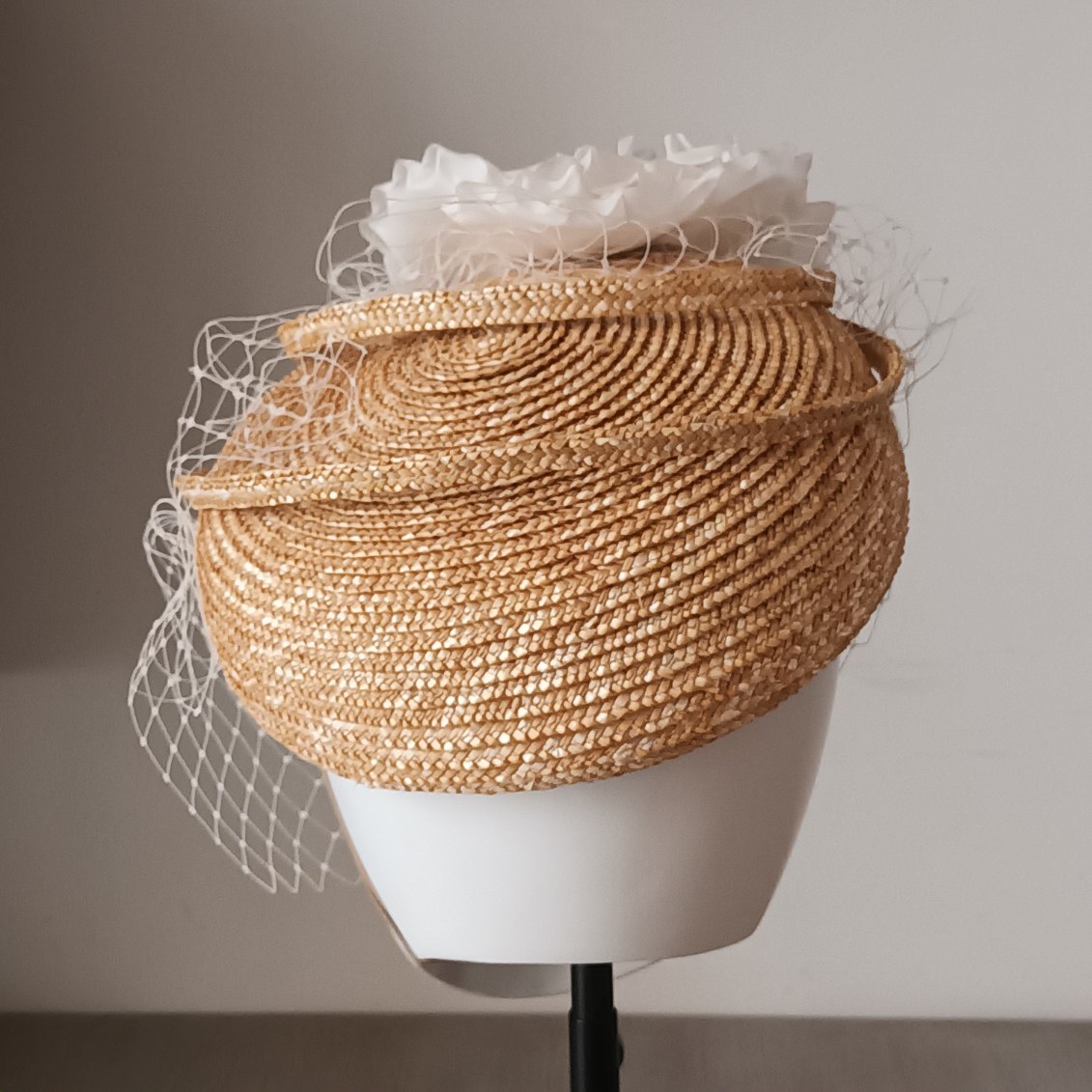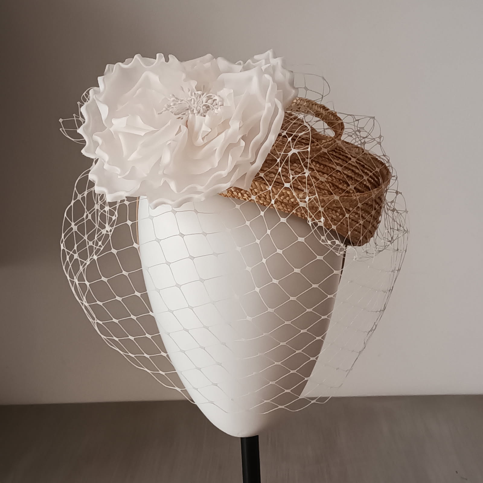 Découvrez notre bibi en paille naturelle, une création artisanale d’exception alliant élégance et raffinement. Ce chapeau de cérémonie est soigneusement cousu et mis en forme à la main dans une paille de qualité supérieure, garantissant légèreté et confort. Surmonté d’une délicate cage de voilette et orné d’une fleur en soie coloris off-white, il apporte une touche romantique et sophistiquée à votre tenue. Les arceaux en paille assortis créent un subtil relief, soulignant le travail minutieux du modiste. Idéal pour un mariage, une garden-party ou une réception, ce bibi en paille naturelle sublime toutes les coiffures, qu’elles soient relevées ou lâchées. Une pièce unique, fabriquée en France, qui conjugue tradition et modernité. Offrez-vous un accessoire de tête intemporel, parfait pour parfaire votre allure avec distinction et style.