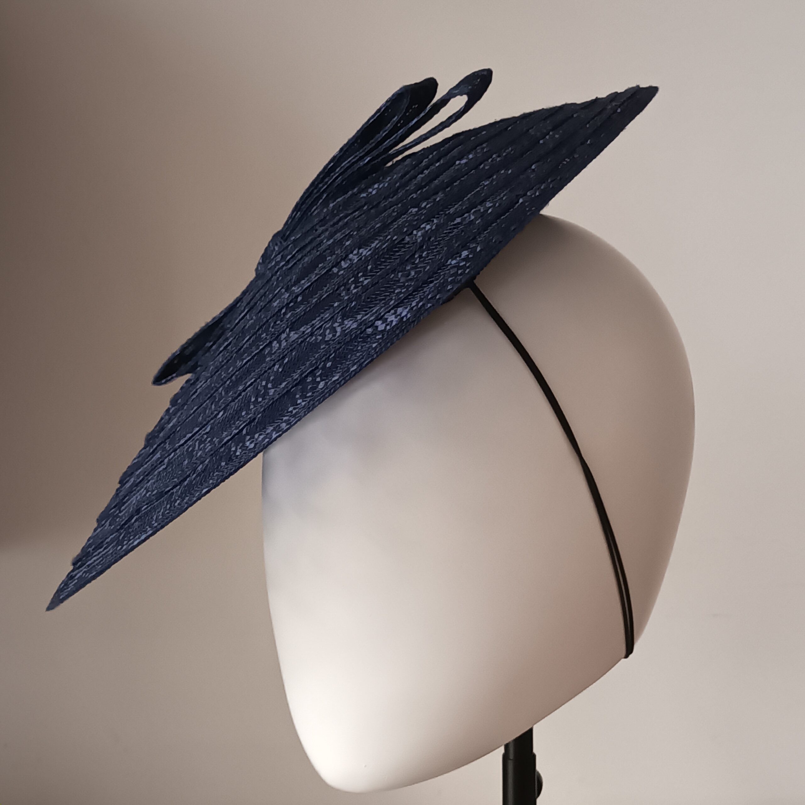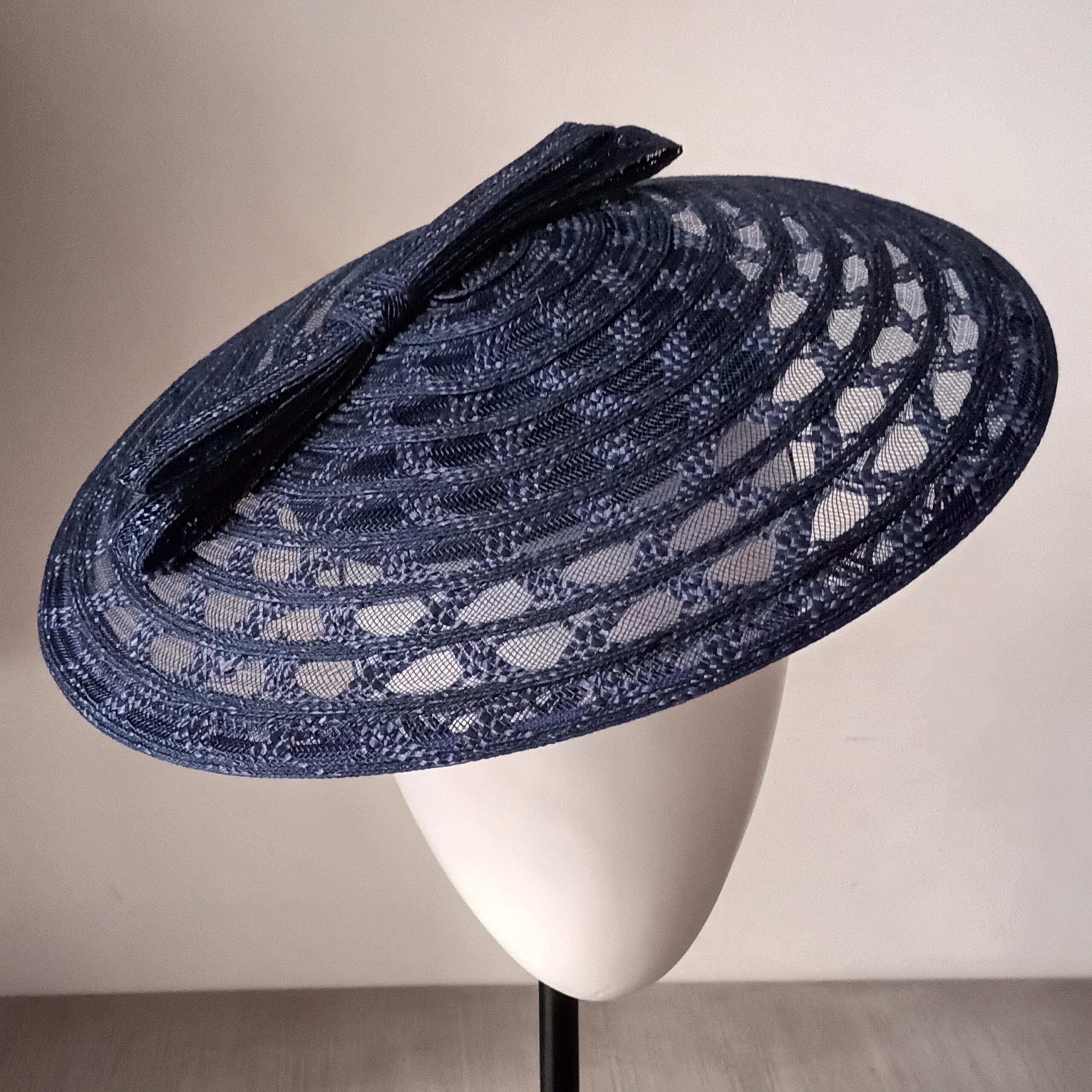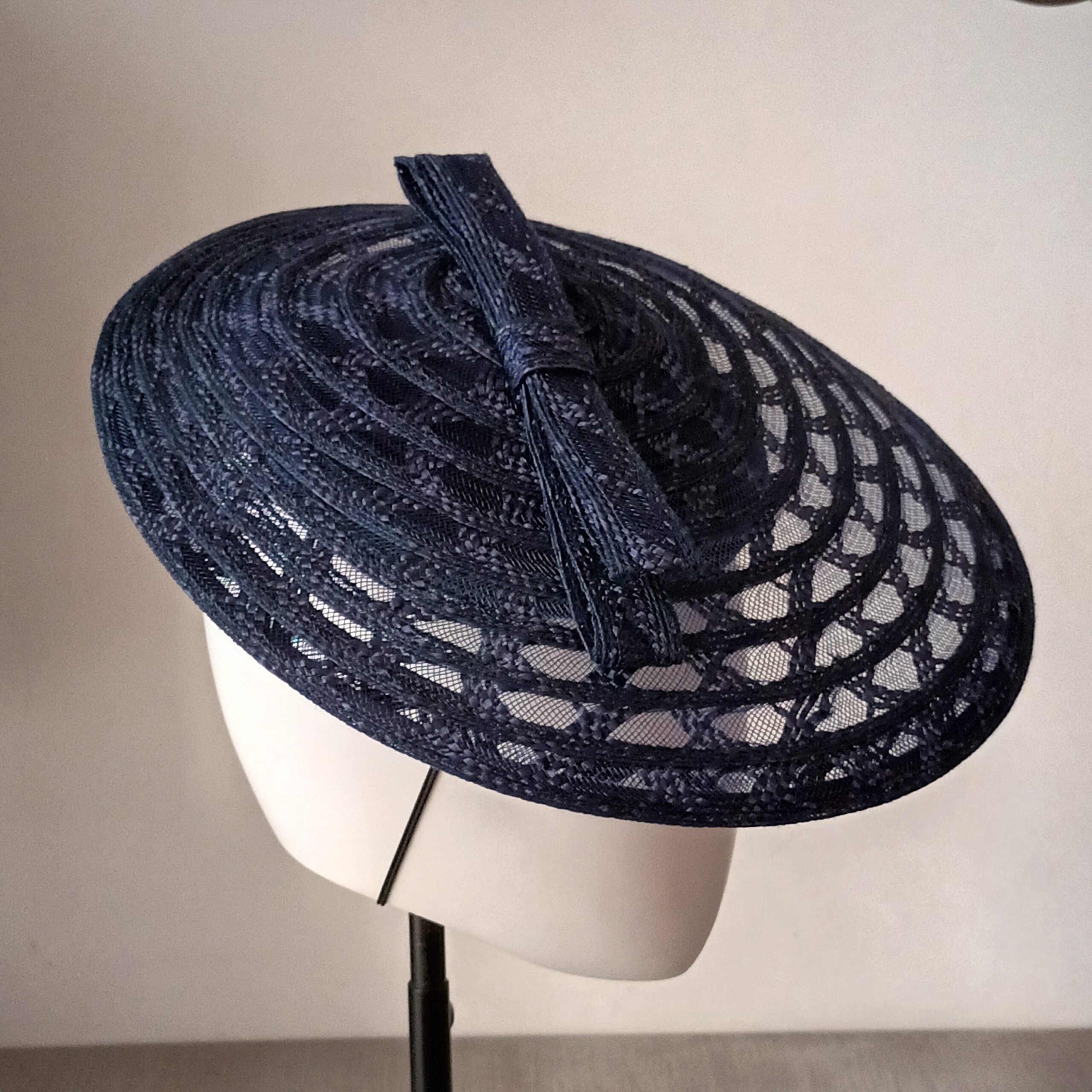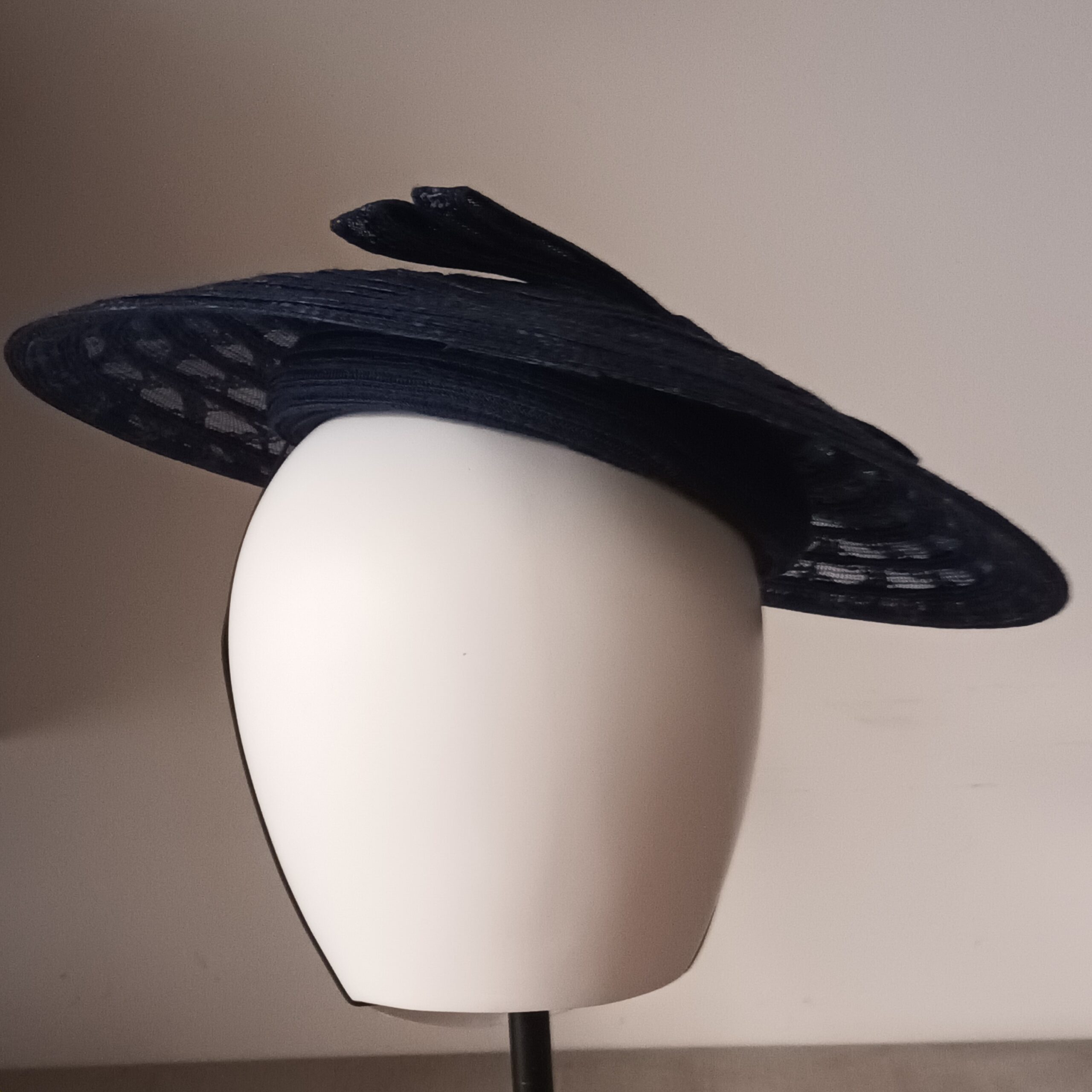 Ce chapeau d’exception séduit par son raffinement unique et son savoir-faire artisanal. Son plateau en galon crin et raphia de coloris marine offre une allure élégante et contemporaine, idéale pour les grandes occasions, mariages ou événements chics. Monté sur un bibi macaron confectionné dans le même galon, il allie légèreté et tenue parfaite. La touche finale, un délicat nœud “libellule” en garniture centrale, apporte une note poétique et féminine à l’ensemble. Ce chapeau de cérémonie allie tradition et modernité, sublimant chaque tenue d’une touche de distinction. Réalisé à la main, il reflète l’excellence d’un artisanat français haut de gamme. Porté incliné ou droit, il illumine le visage et souligne la silhouette avec élégance. Un accessoire d’exception pour celles qui recherchent un chapeau original, chic et intemporel, symbole d’élégance et de personnalité affirmée.